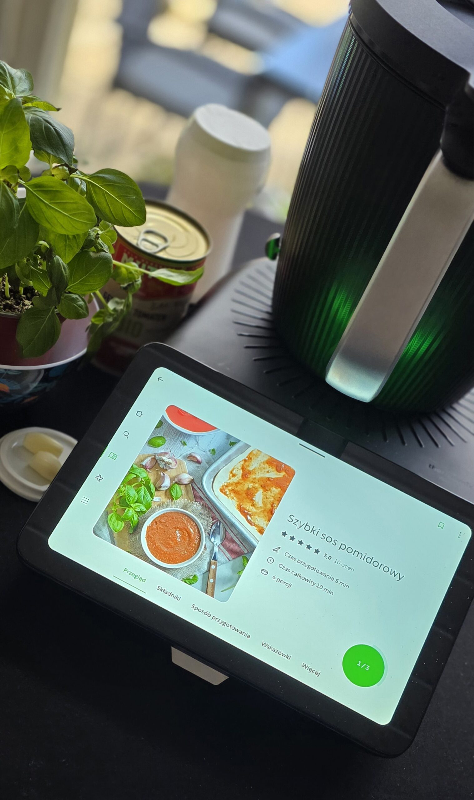 Thermomix TM7 łączy się z platformą Cookidoo, gdzie masz dostęp do ponad 90 000 przepisów – w tym setek w języku polskim. Możesz planować tygodniowe menu, automatycznie tworzyć listy zakupów i gotować intuicyjnie.